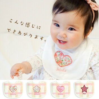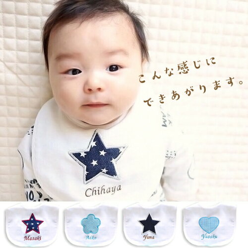 出産祝い 名入れ スタイ 男の子 女の子 赤ちゃん ベビー 新生児 名前入り 無添加 綿100% ガーゼ タオル パイル アップリケ ベビースタイ 星 花 ハート ギフト プレゼント よだれかけ 食事用スタイ よだれ掛け honey annd mum