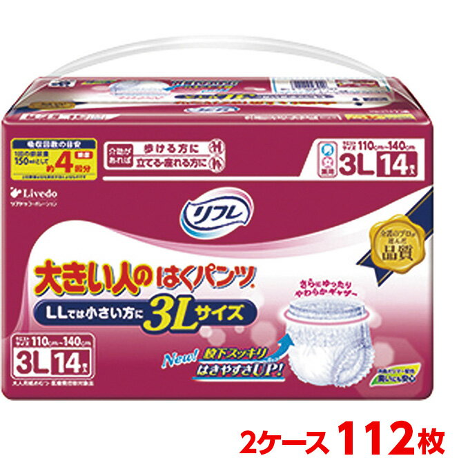 リブドゥコーポレーション リフレ 大きい人のはくパンツ 600cc 3L 2ケース 112枚 (14枚入×8袋) 大人のおむつ 大人のオムツ