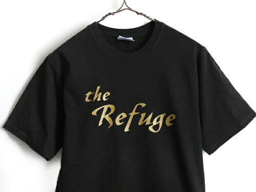 ブラックボディーにゴールドのメッセージプリント シンプルながら一枚で様になる 古着ならではの一点物の商品です。
